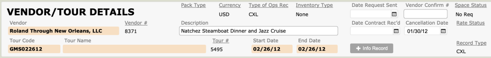 As appropriate, refer to the addendum “Cancelling a Tour and Closing Out Booking/Operations Records” for instructions for zeroing out the record.