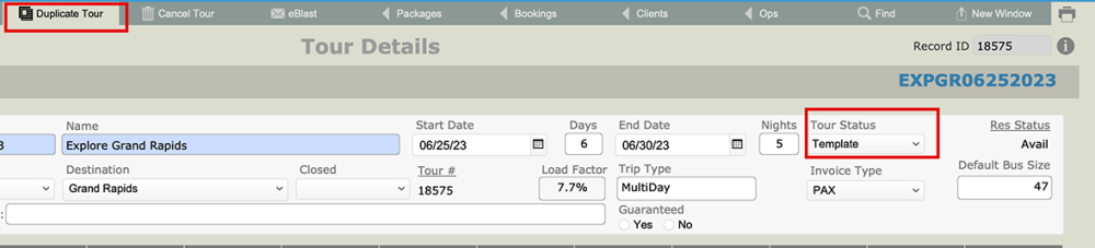 Once everything is to your liking and, as necessary, the new Packages have been re-priced, go ahead and publish them and create Ops records. Be sure to also go back to the Tour record that you copied and change its status from “Template” back to “Active.”