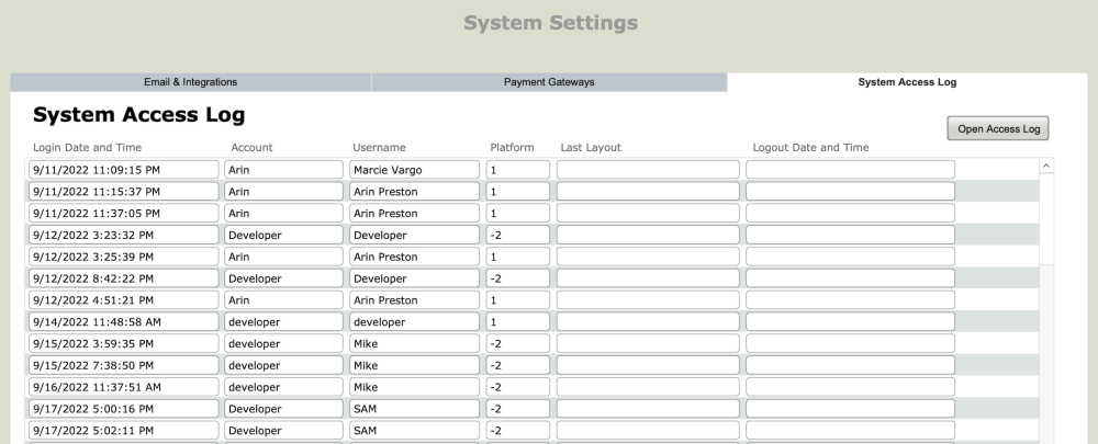 The system access log is a quick way to identify login activity in the TourTools v5 application.