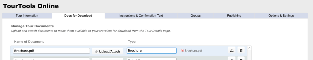 You can attach catalogs, brochures, waivers, etc. using this tab. Users will be presented with the option to download them from the Tour Details page.