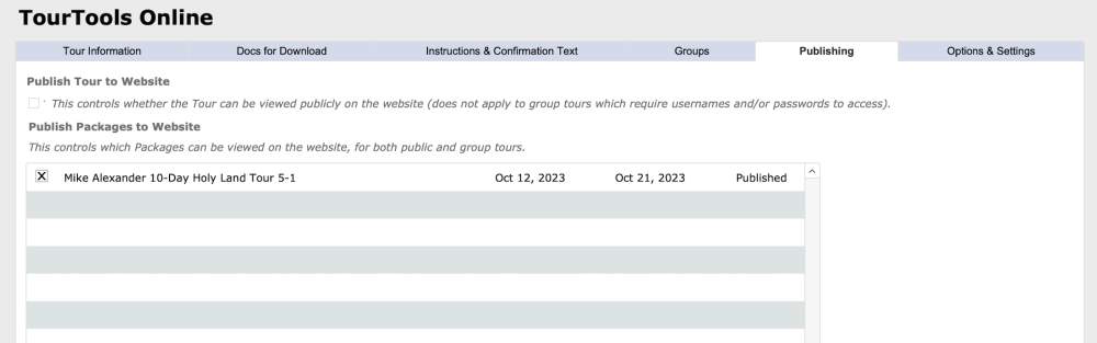 You can determine whether a tour is available publicly or not. Checking this box will make that Tour visible on the site and available for booking.