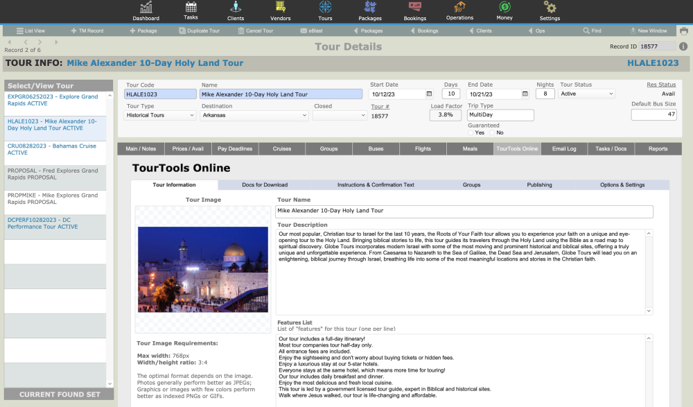 There is a dedicated TourTools Online tab that allows users to manage & publish information related to the Tour. On this tab, you will find 6 sub-tabs as described below.